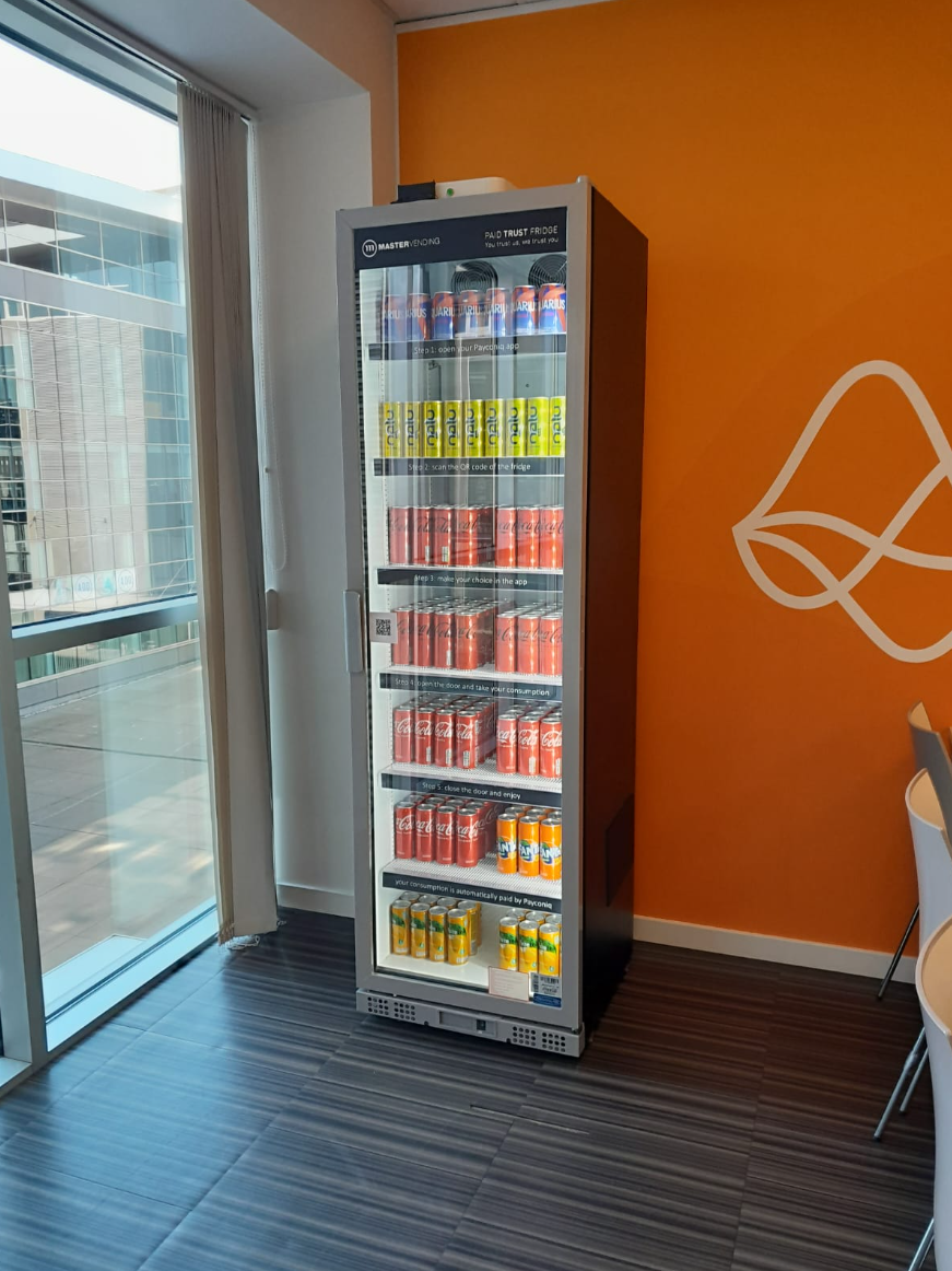 Verklaring: In samenspraak met de klant werd de smartfridge gevuld op een bepaalde manier. Dit om de juiste hoeveelheid producten, juiste verhouding en juiste uitstraling te garanderen.