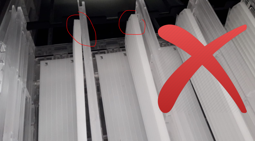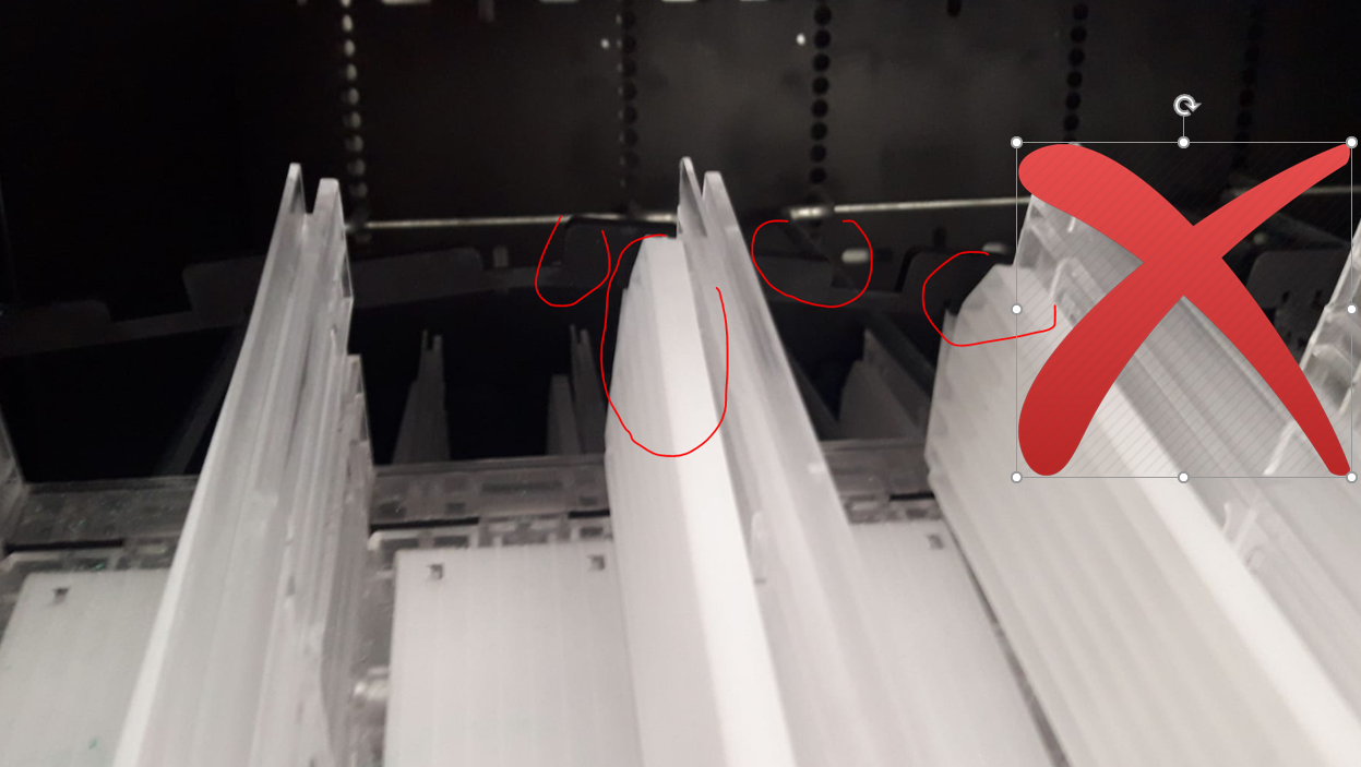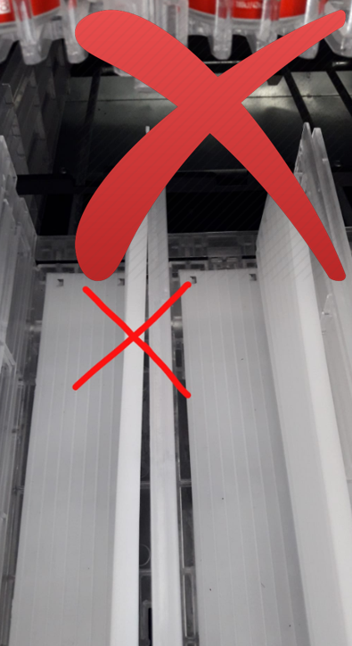 In de GD9 / GD6 (Vendo toestellen), worden er versmallingen geplaatst zodat de sleek cans correct naar voren worden geduwd en blockages te vermijden. We merken echter dat deze versmallingen soms niet correct werden geplaatst. Hieronder vinden jullie de correcte wijze hoe dergelijke versmallingen te plaatsen.