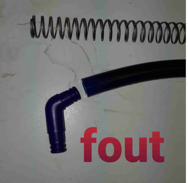 - Uitloop Uitgifte buisje is verkeerd gemonteerd
